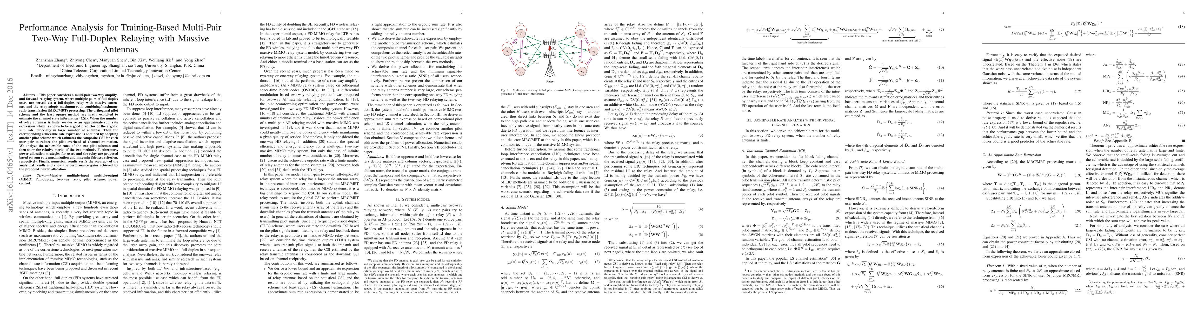 This paper analyzes a multi-pair two-way full-duplex relaying system with massive antennas, employing MRC/MRT processing. It compares two pilot schemes for channel state information estimation, proposes power allocation strategies, and verifies performance gains through numerical results.