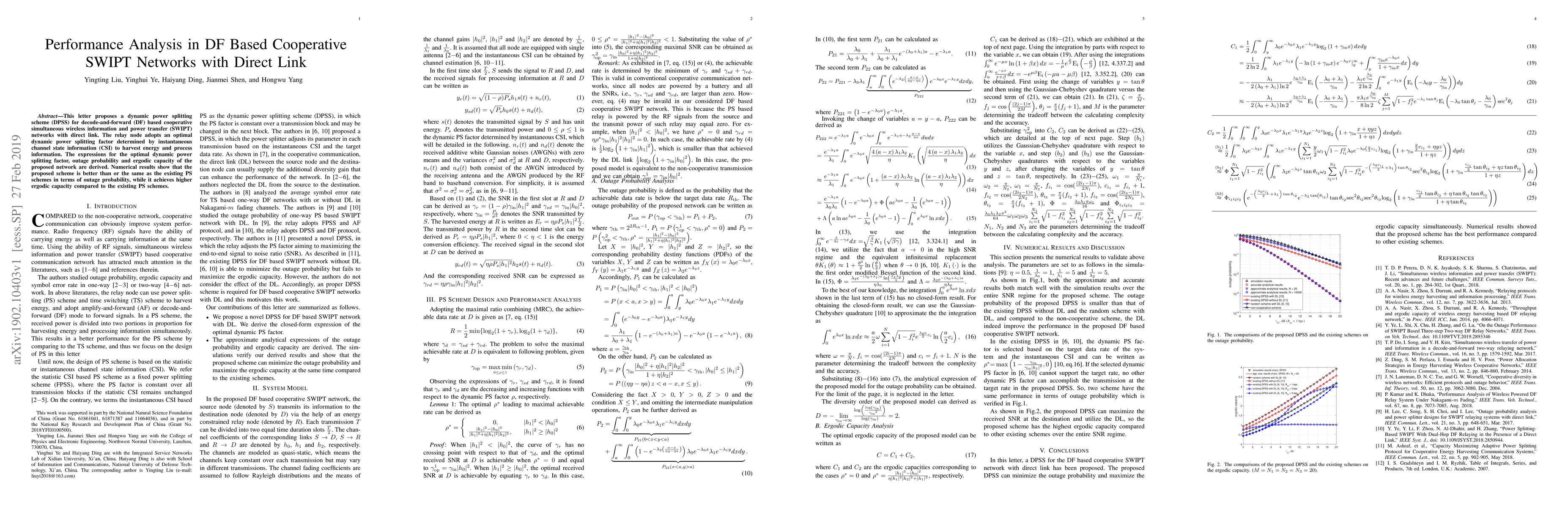 This paper proposes a dynamic power splitting scheme for DF-based cooperative SWIPT networks with direct link, optimizing the relay's energy harvesting and information processing. Numerical results demonstrate improved outage probability and higher ergodic capacity compared to existing power splitting schemes.