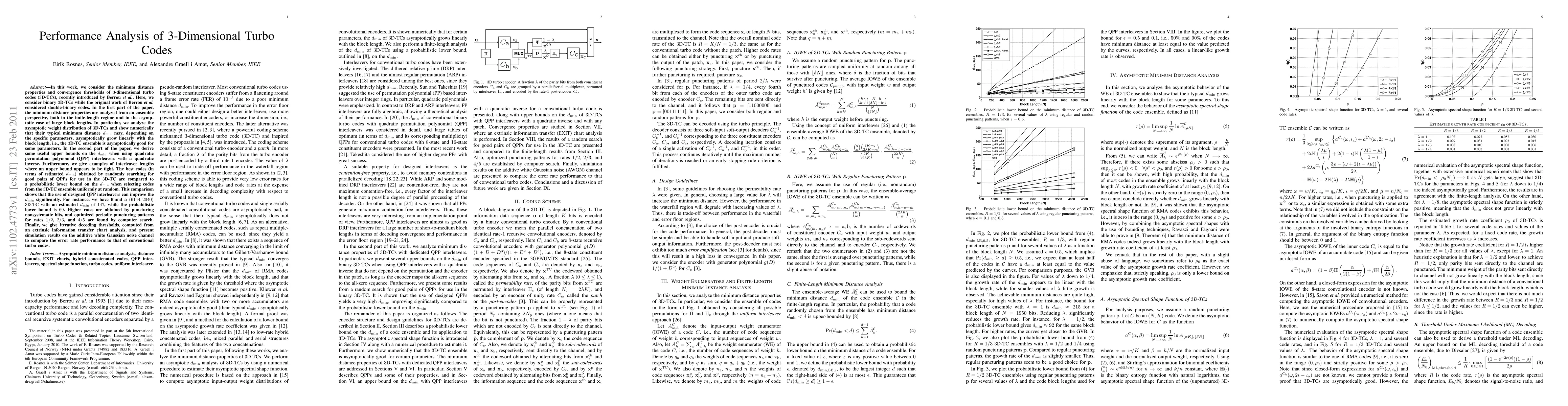 This paper analyzes the minimum distance properties and convergence thresholds of 3-dimensional turbo codes (3D-TCs), showing that their typical minimum distance can grow linearly with block length. It demonstrates that designed quadratic permutation polynomial interleavers can significantly enhance the minimum distance, achieving higher rates through optimized puncturing patterns, and compares their performance to conventional turbo codes.