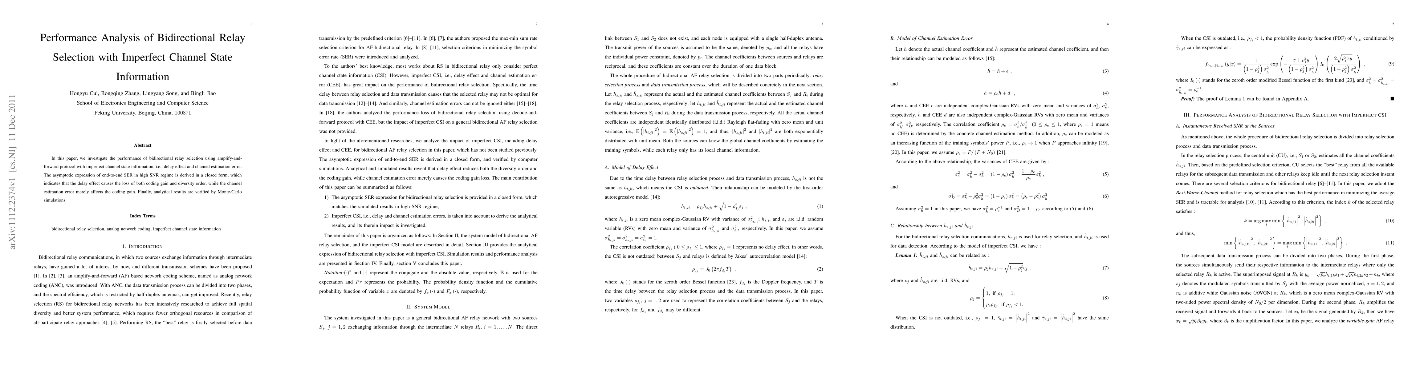 This paper analyzes bidirectional relay selection under imperfect channel state information, deriving an asymptotic expression for end-to-end symbol error rate in high SNR. It shows that delay effects reduce both coding gain and diversity order, while channel estimation errors only affect coding gain, verified by Monte-Carlo simulations.