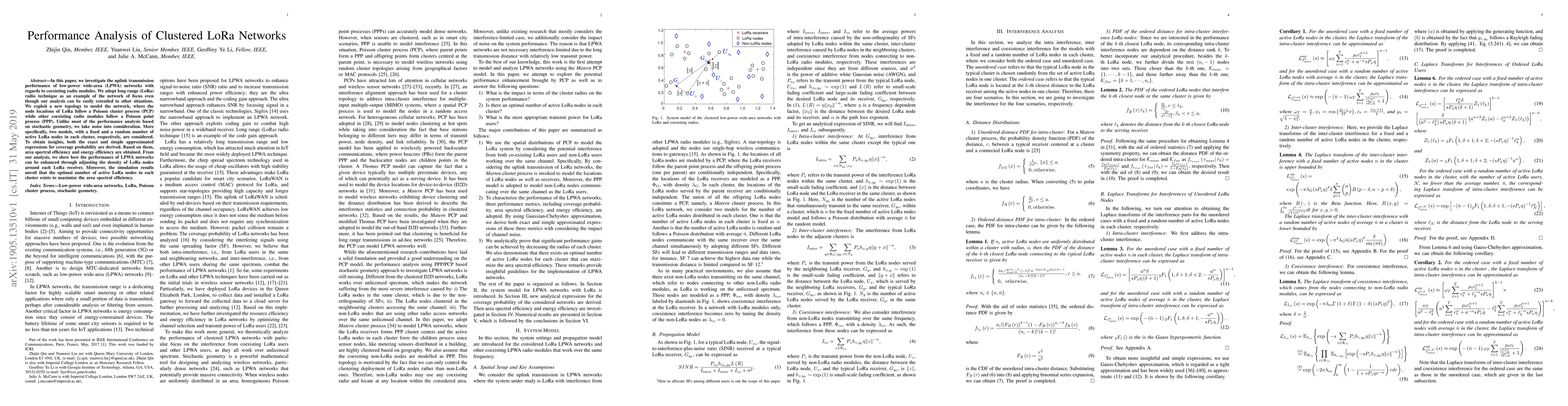 This paper analyzes the uplink performance of LoRa networks using a Poisson cluster model, considering noise and comparing fixed vs. random active node scenarios. The study reveals optimal LoRa node density for maximizing area spectral efficiency and energy efficiency.