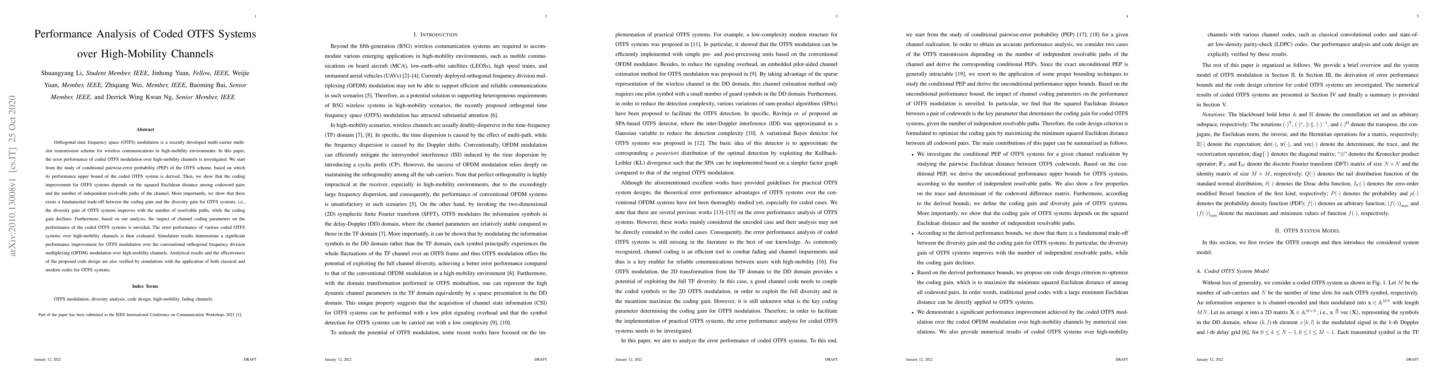 This paper investigates the error performance of coded orthogonal time frequency space (OTFS) modulation over high-mobility channels, revealing a trade-off between coding gain and diversity gain. Simulation results show significant performance improvements for OTFS over conventional OFDM in such environments.