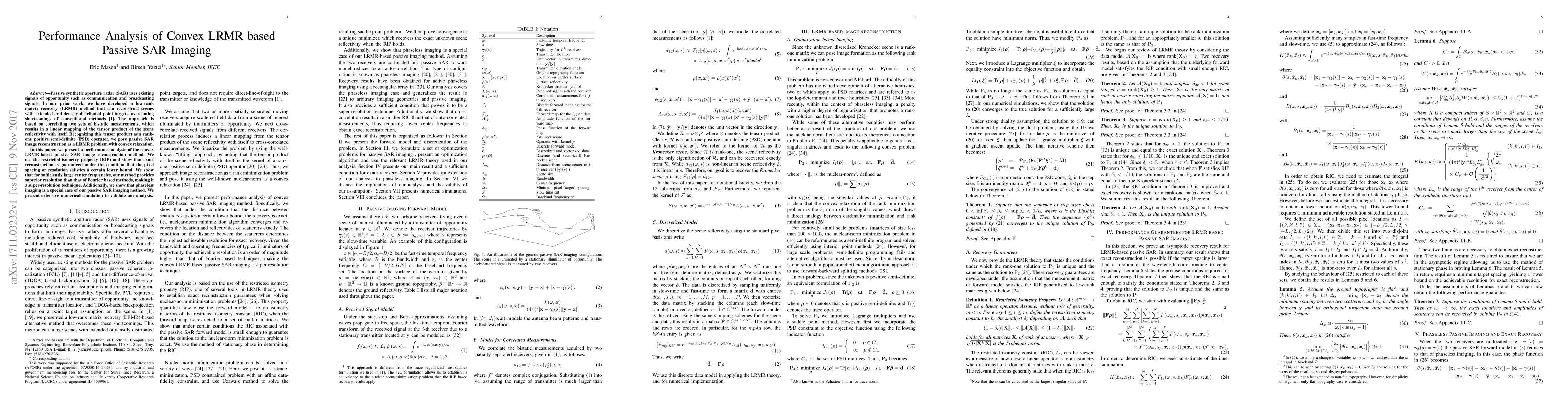 A new method for passive synthetic aperture radar imaging uses convex low-rank matrix recovery to provide superior resolution compared to traditional Fourier-based methods.