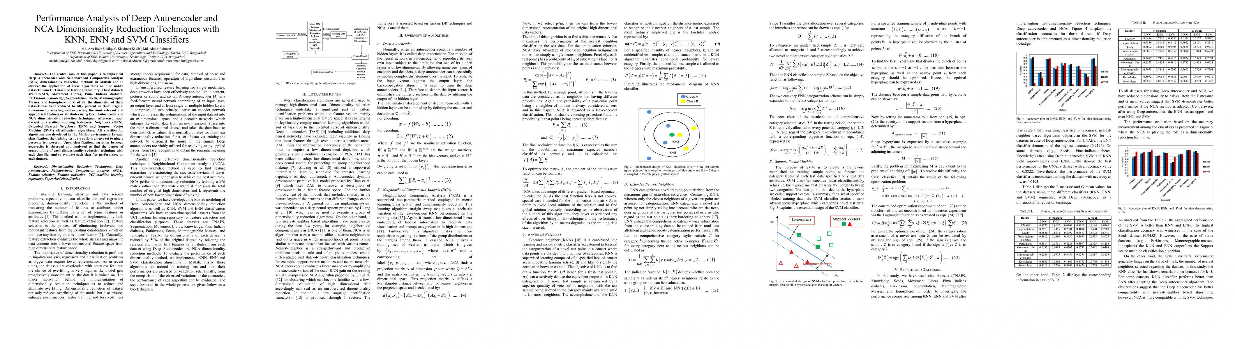 This paper evaluates the performance of Deep Autoencoder and NCA dimensionality reduction techniques applied to nine diverse UCI datasets, followed by classification using KNN, ENN, and SVM. The study analyzes the accuracy variations to assess the compatibility of each reduction method with the classifiers.