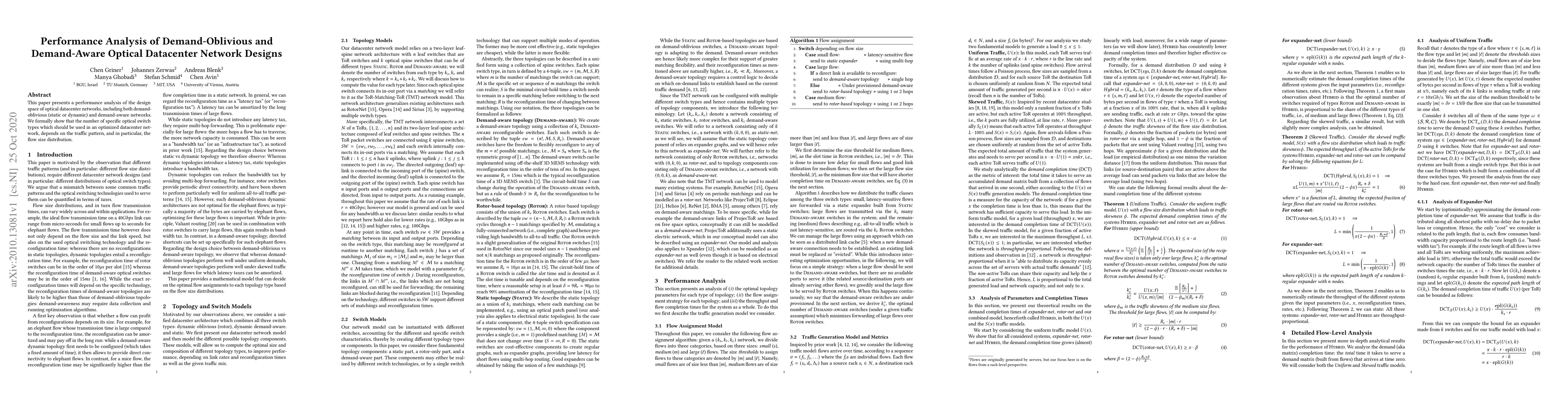 This paper analyzes optical datacenter network designs, comparing demand-oblivious and demand-aware approaches. It concludes that the optimal number of specific optical switch types depends on traffic patterns and the distribution of flow sizes.