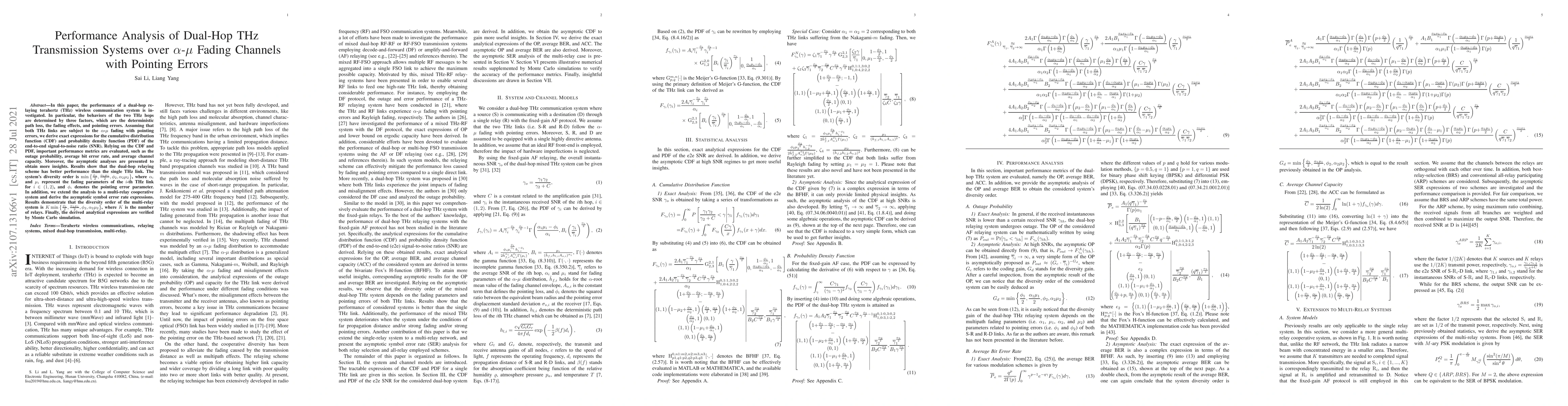 This paper analyzes the performance of dual-hop THz relay systems under $\alpha$-$\mu$ fading with pointing errors, deriving CDF and PDF for end-to-end SNR. The study finds dual-hop relaying outperforms single THz links, with diversity order dependent on fading and pointing error parameters.