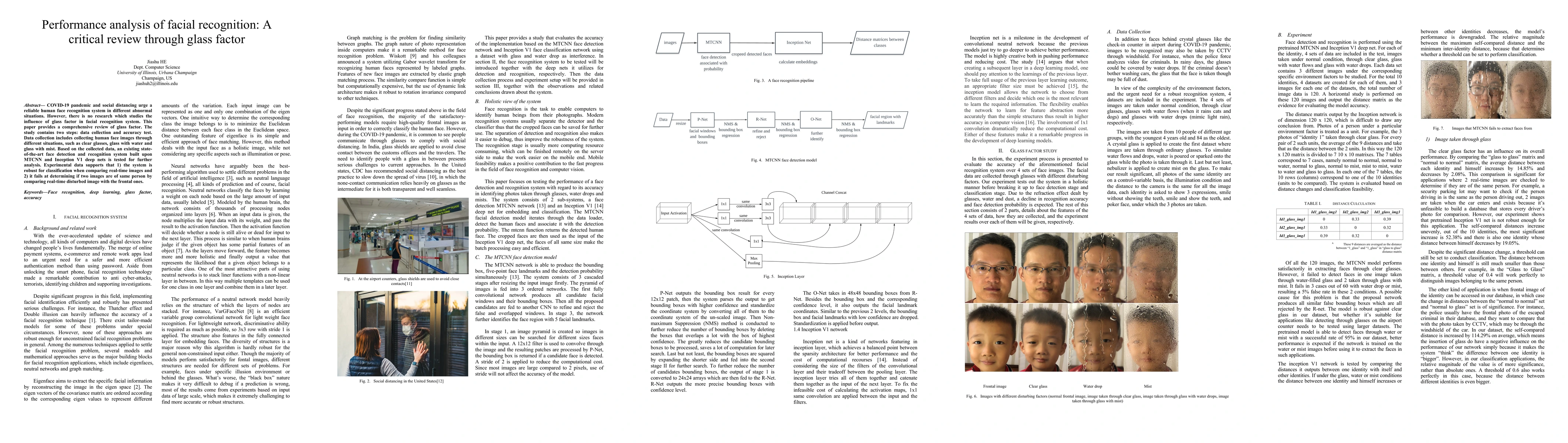 COVID-19 pandemic and social distancing urge a reliable human face recognition system in different abnormal situations. However, there is no research which studies the influence of glass factor in facial recognition system. This paper provides a comprehensive review of glass factor. The study contains two steps: data collection and accuracy test. Data collection includes collecting human face images through different situations, such as clear glasses, glass with water and glass with mist. Based on the collected data, an existing state-of-the-art face detection and recognition system built upon MTCNN and Inception V1 deep nets is tested for further analysis. Experimental data supports that 1) the system is robust for classification when comparing real-time images and 2) it fails at determining if two images are of same person by comparing real-time disturbed image with the frontal ones.