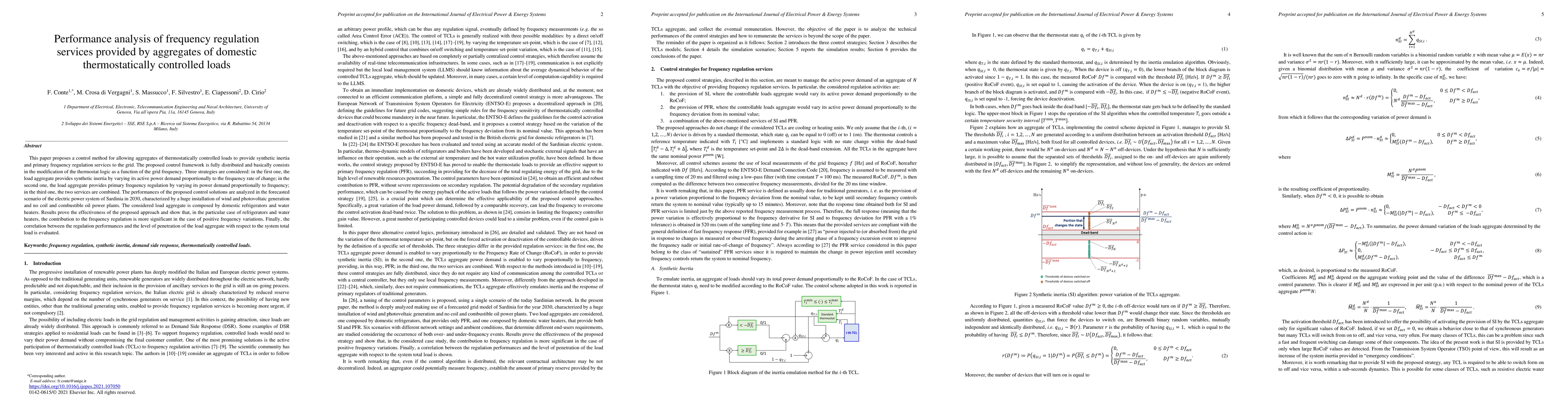 This paper proposes a distributed control method for domestic thermostatically controlled loads to provide synthetic inertia and primary frequency regulation services. The effectiveness of three strategies is analyzed in Sardinia's 2030 power system, showing significant frequency regulation contributions during positive frequency variations.