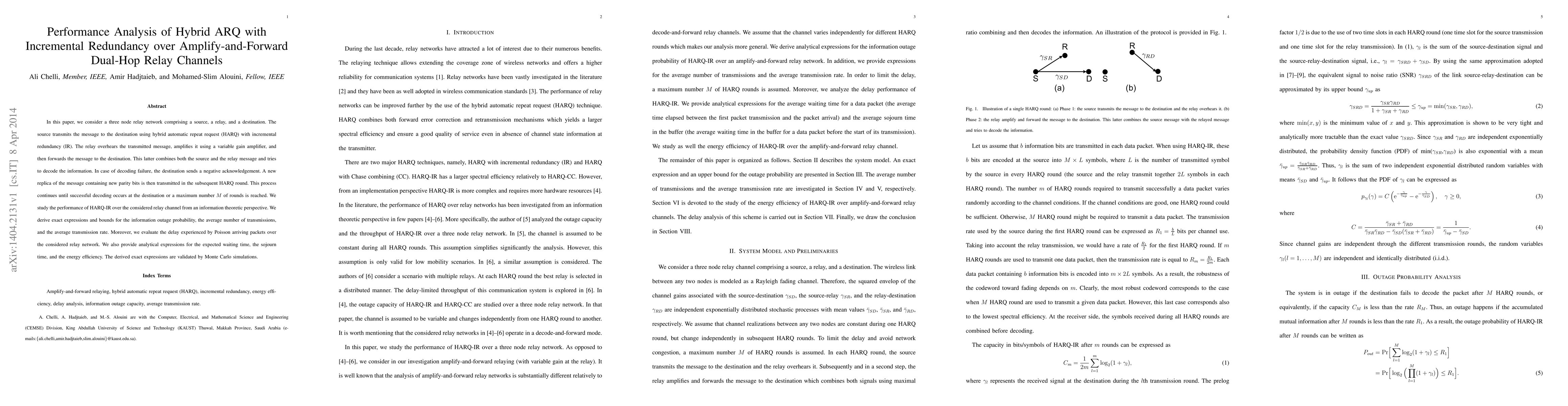 A new protocol for hybrid automatic repeat request (HARQ) with incremental redundancy is analyzed over dual-hop relay channels, providing exact expressions and bounds for performance metrics such as information outage probability and average transmission rate.