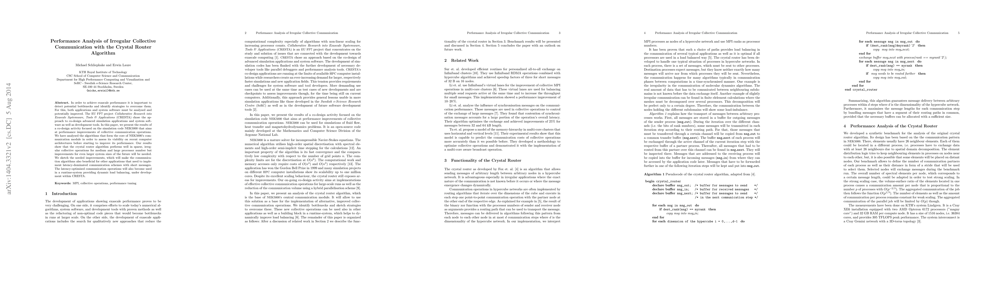 Researchers analyzed the Crystal Router Algorithm for performance improvements in collective communication operations, finding it performs well on medium to large systems but requiring further optimization for larger sizes. They identified areas for improvement to make the algorithm beneficial for other applications with latency-dominated communication schemes.