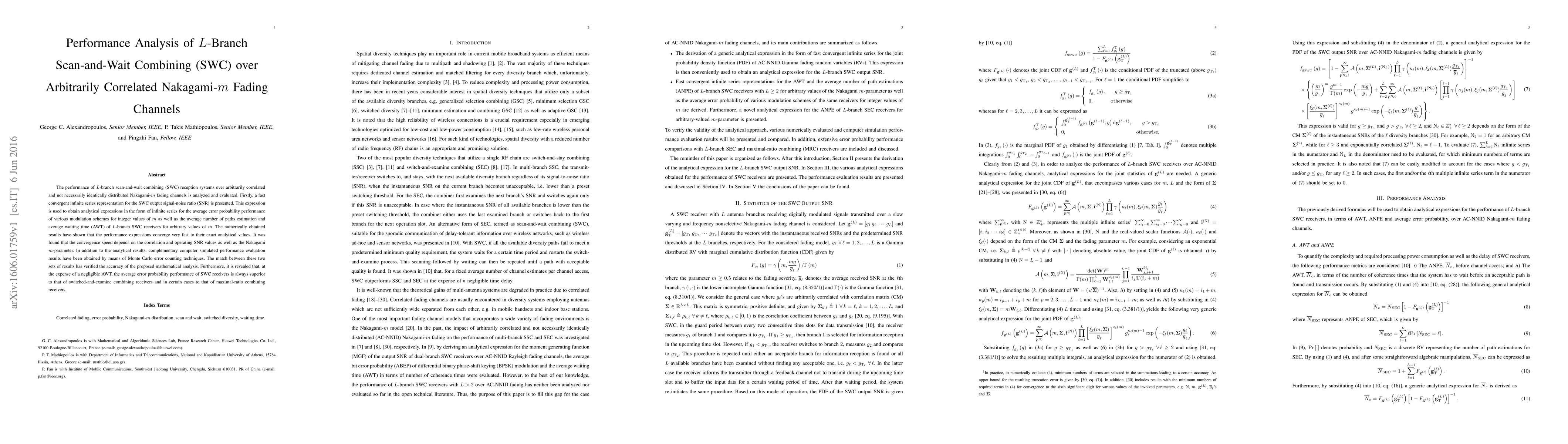 The performance of $L$-branch scan-and-wait combining (SWC) reception systems over arbitrarily correlated and not necessarily identically distributed Nakagami-$m$ fading channels is analyzed and evaluated. Firstly, a fast convergent infinite series representation for the SWC output signal-noise ratio (SNR) is presented. This expression is used to obtain analytical expressions in the form of infinite series for the average error probability performance of various modulation schemes for integer values of $m$ as well as the average number of paths estimation and average waiting time (AWT) of $L$-branch SWC receivers for arbitrary values of $m$. The numerically obtained results have shown that the performance expressions converge very fast to their exact analytical values. It was found that the convergence speed depends on the correlation and operating SNR values as well as the Nakagami $m$-parameter. In addition to the analytical results, complementary computer simulated performance evaluation results have been obtained by means of Monte Carlo error counting techniques. The match between these two sets of results has verified the accuracy of the proposed mathematical analysis. Furthermore, it is revealed that, at the expense of a negligible AWT, the average error probability performance of SWC receivers is always superior to that of switched-and-examine combining receivers and in certain cases to that of maximal-ratio combining receivers.