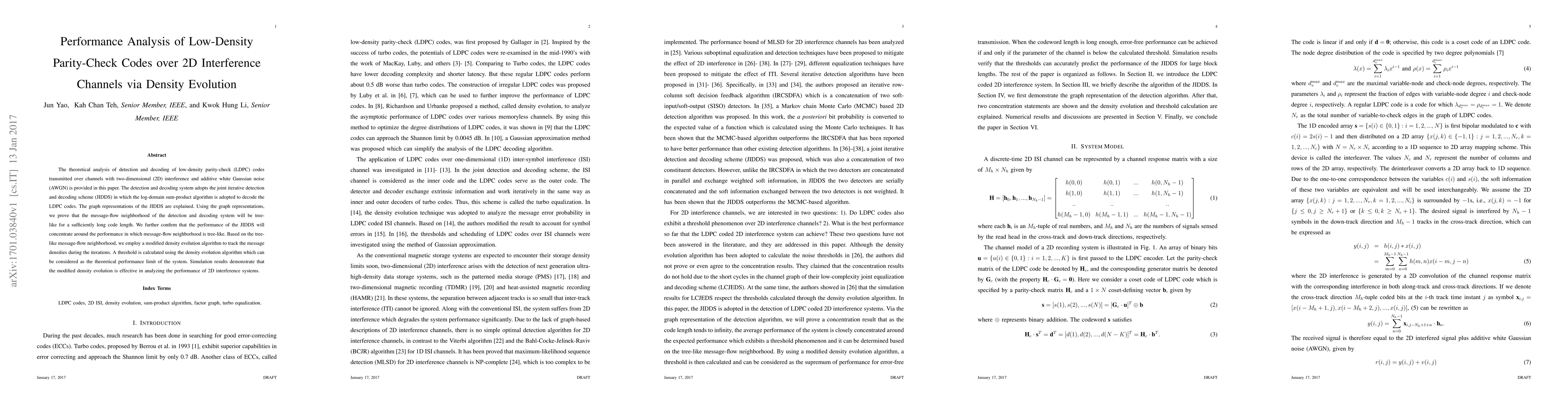 This paper analyzes the detection and decoding of low-density parity-check codes over 2D interference channels using the joint iterative detection and decoding scheme. It employs a modified density evolution algorithm to determine performance limits and demonstrates its effectiveness through simulations.
