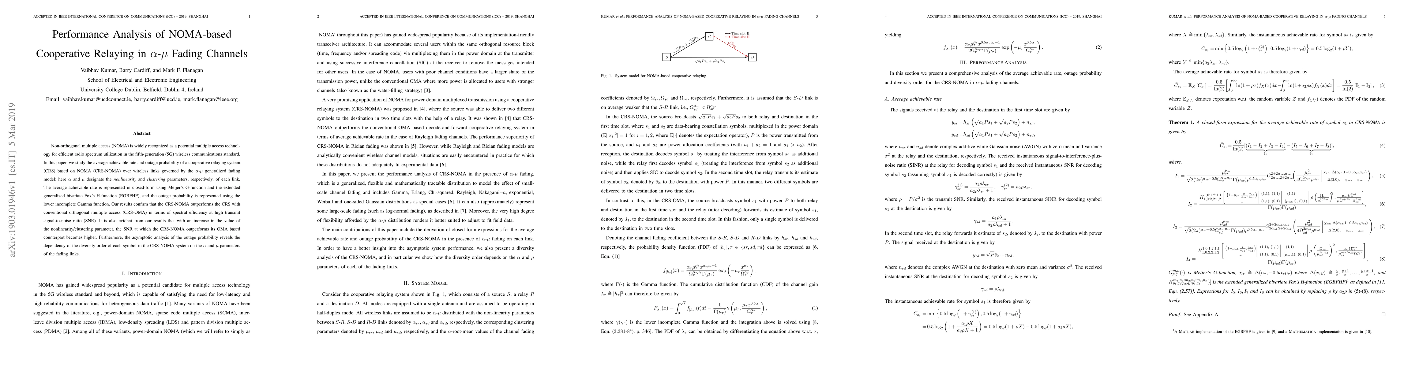 This paper analyzes the performance of NOMA-based cooperative relaying systems (CRS-NOMA) over $\alpha$-$\mu$ fading channels, showing that CRS-NOMA achieves higher spectral efficiency than CRS with orthogonal multiple access (CRS-OMA) at high SNR. The study uses Meijer's G-function and extended generalized bivariate Fox's H-function for average achievable rate and lower incomplete Gamma function for outage probability, revealing that higher nonlinearity/clustering parameters increase the SNR threshold for CRS-NOMA's advantage.