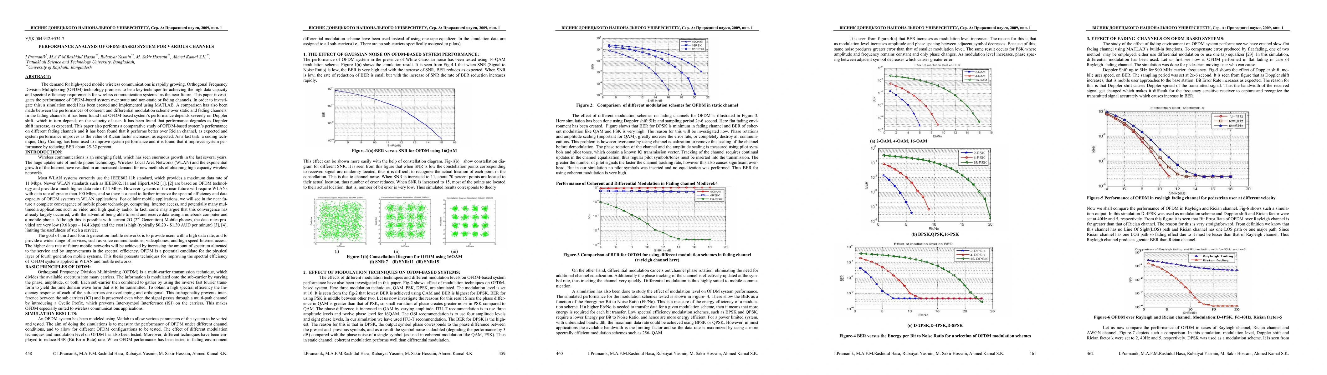 This paper evaluates the performance of OFDM-based systems across static and fading channels, finding that OFDM performs better over Rician channels and that performance degrades with increased Doppler shift. Gray Coding is shown to improve system performance by reducing BER by 25-32 percent.