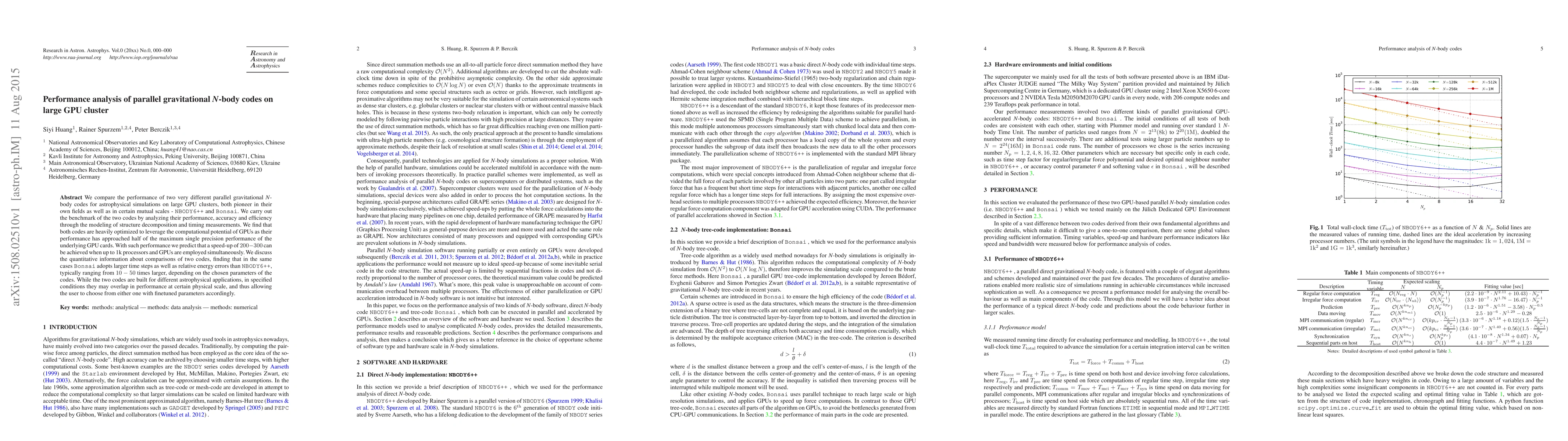 This paper compares the performance of two parallel gravitational $N$-body codes, NBODY6++ and Bonsai, on large GPU clusters, finding both are highly optimized for GPU use. The study reveals that Bonsai typically exhibits larger time steps and energy errors compared to NBODY6++, suggesting users may choose between them based on specific application needs.