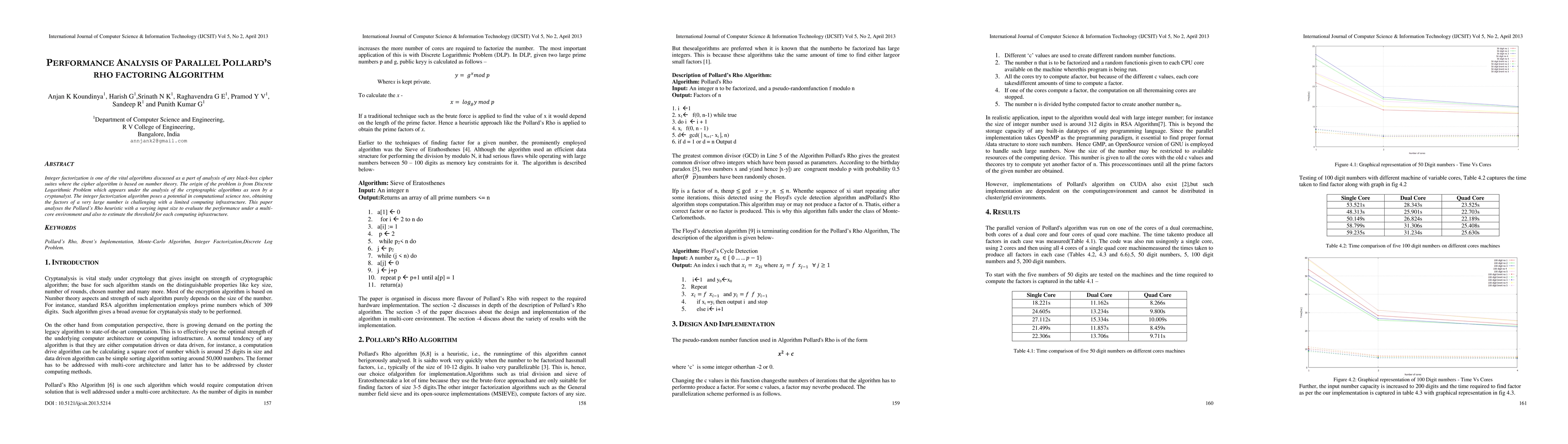 Integer factorization is one of the vital algorithms discussed as a part of analysis of any black-box cipher suites where the cipher algorithm is based on number theory. The origin of the problem is from Discrete Logarithmic Problem which appears under the analysis of the crypto-graphic algorithms as seen by a crypt-analyst. The integer factorization algorithm poses a potential in computational science too, obtaining the factors of a very large number is challenging with a limited computing infrastructure. This paper analyses the Pollards Rho heuristic with a varying input size to evaluate the performance under a multi-core environment and also to estimate the threshold for each computing infrastructure.