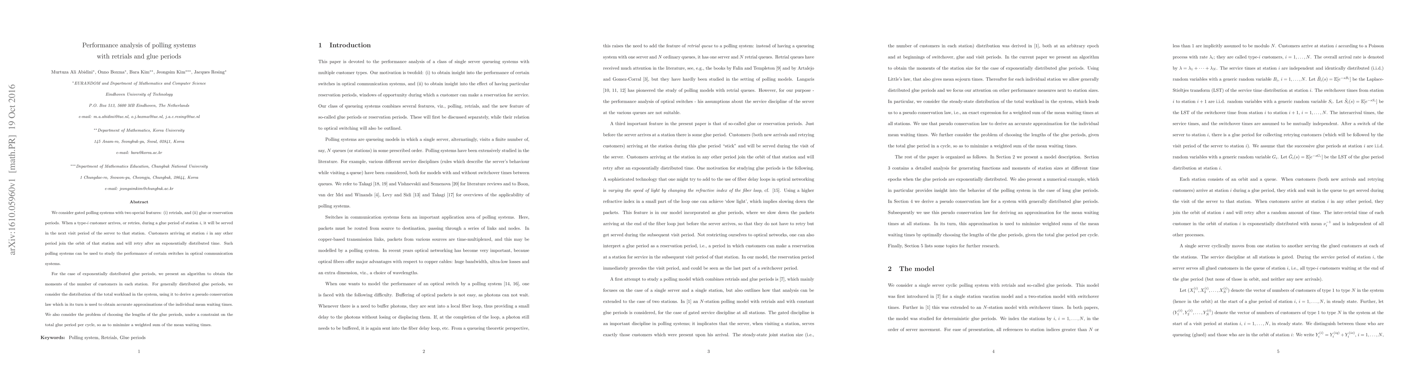 This paper analyzes gated polling systems with retrials and glue periods, focusing on performance metrics like customer waiting times and system workload. It presents algorithms for moments of customer numbers under exponential glue periods and approximations for general distributions, and discusses optimization of glue period lengths to minimize weighted mean waiting times.