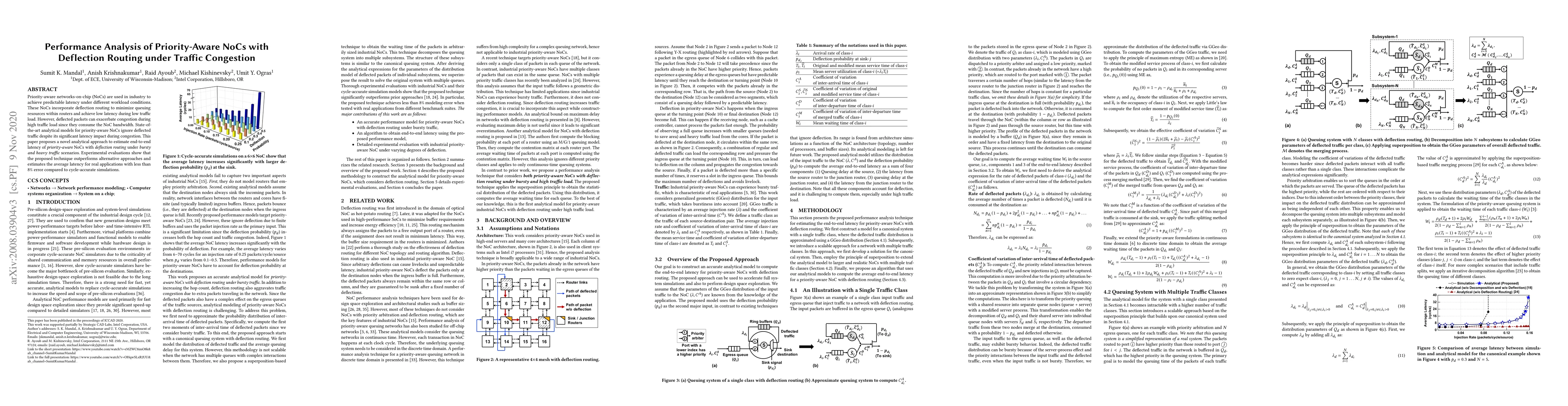 This paper proposes a novel analytical model to estimate the end-to-end latency of priority-aware NoCs with deflection routing under high traffic congestion, addressing the significant latency impact of deflected packets. Experimental evaluations demonstrate that the new approach outperforms existing methods with less than 8% error compared to cycle-accurate simulations.