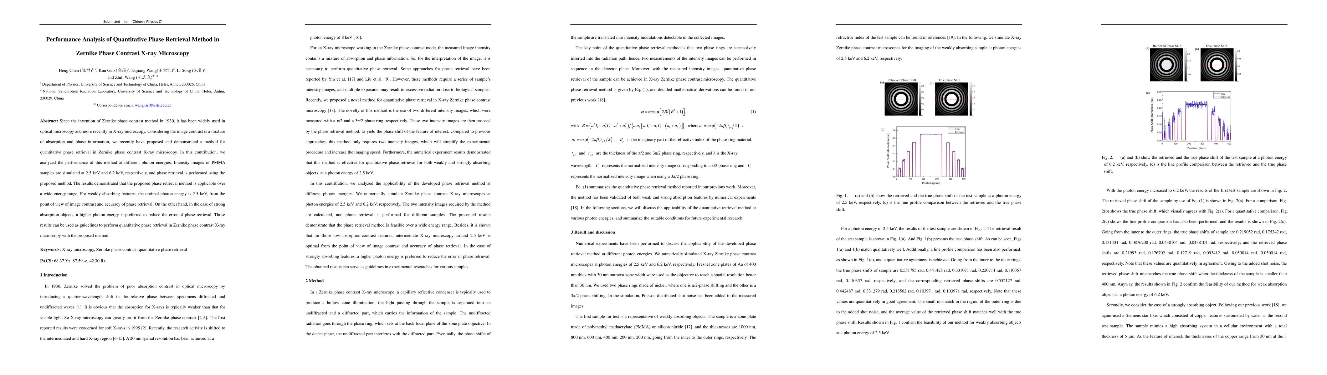 This paper analyzes the performance of a quantitative phase retrieval method in Zernike phase contrast X-ray microscopy at different photon energies. Results show optimal phase retrieval at 2.5 keV for weakly absorbing features and higher energy for strong absorption, providing guidelines for optimal microscopy settings.