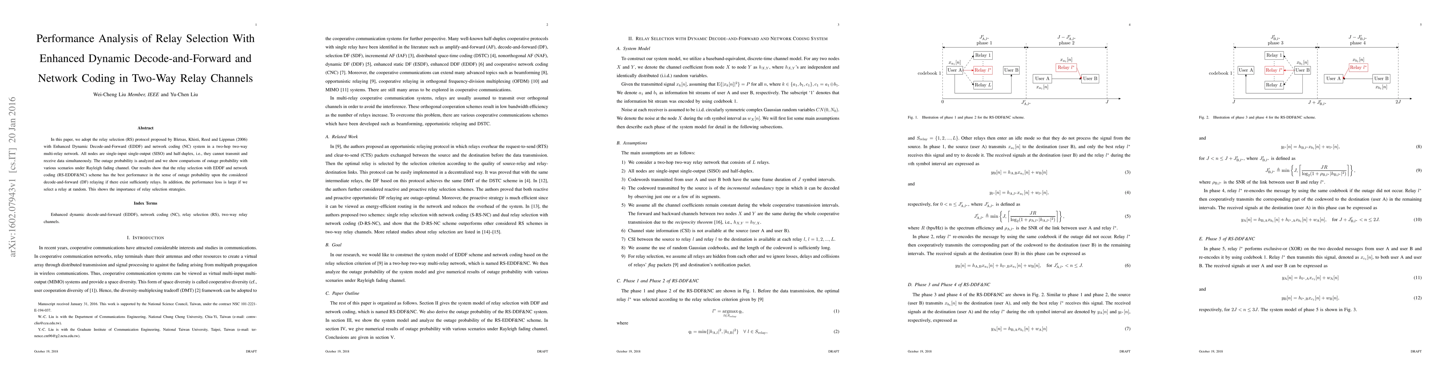This paper analyzes the performance of relay selection using Enhanced Dynamic Decode-and-Forward and network coding in a two-way relay network. The study finds that relay selection with EDDF and NC significantly improves outage probability compared to random relay selection, highlighting the importance of strategic relay selection.