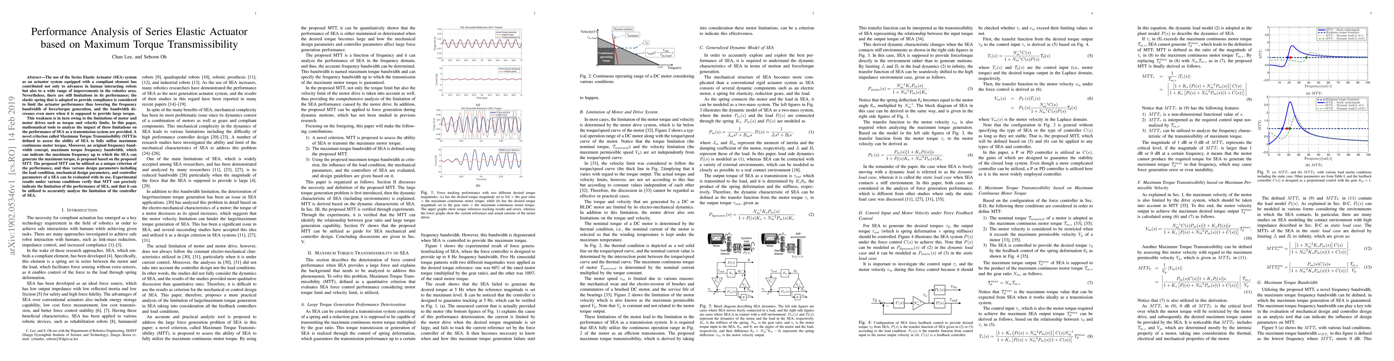 This paper analyzes the performance of Series Elastic Actuators (SEA) using a novel Maximum Torque Transmissibility (MTT) criterion to assess how well SEAs utilize maximum motor torque. It proposes a new frequency bandwidth concept, maximum torque frequency bandwidth, to indicate the highest frequency at which SEA can generate maximum torque, aiding in the evaluation of design and controller parameters.
