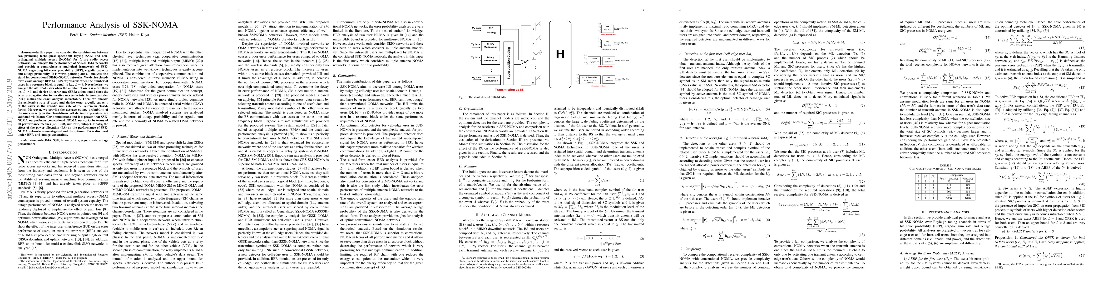 In this paper, we consider the combination between two promising techniques: space-shift keying (SSK) and non-orthogonal multiple access (NOMA) for future radio access networks. We analyze the performance of SSK-NOMA networks and provide a comprehensive analytical framework of SSK-NOMA regarding bit error probability (BEP), ergodic capacity and outage probability. It is worth pointing out all analysis also stand for conventional SIMO-NOMA networks. We derive closed-form exact average BEP (ABEP) expressions when the number of users in a resource block is equal to i.e., $L=3$. Nevertheless, we analyze the ABEP of users when the number of users is more than i.e., $L\geq3$, and derive bit-error-rate (BER) union bound since the error propagation due to iterative successive interference canceler (SIC) makes the exact analysis intractable. Then, we analyze the achievable rate of users and derive exact ergodic capacity of the users so the ergodic sum rate of the system in closed-forms. Moreover, we provide the average outage probability of the users exactly in the closed-form. All derived expressions are validated via Monte Carlo simulations and it is proved that SSK-NOMA outperforms conventional NOMA networks in terms of all performance metrics (i.e., BER, sum rate, outage). Finally, the effect of the power allocation (PA) on the performance of SSK-NOMA networks is investigated and the optimum PA is discussed under BER and outage constraints.
