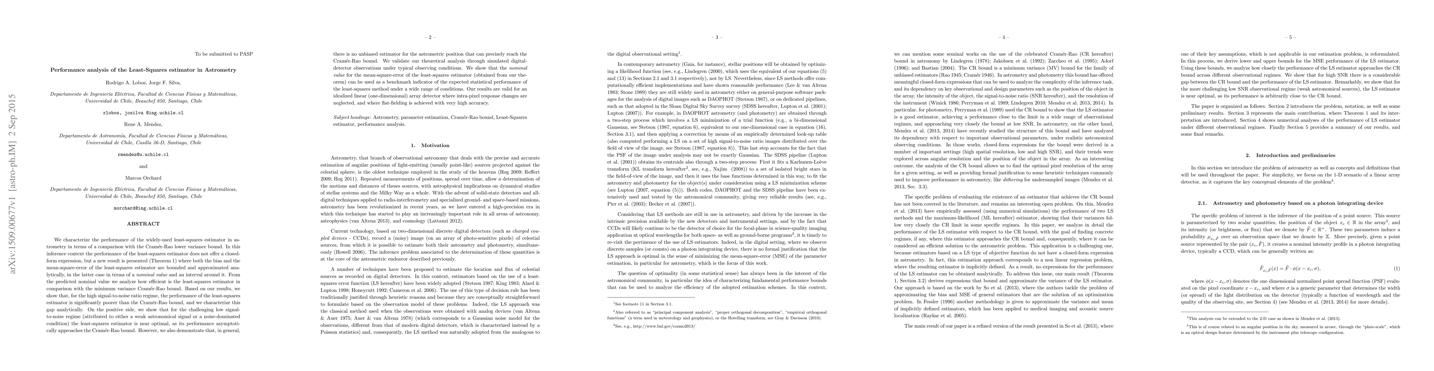 This paper analyzes the performance of the least-squares estimator in astrometry, comparing it to the Cramer-Rao lower variance bound. It finds that while the least-squares estimator is suboptimal in high signal-to-noise conditions, it approaches optimality in low signal-to-noise regimes, though no unbiased estimator can fully reach the Cramer-Rao bound.