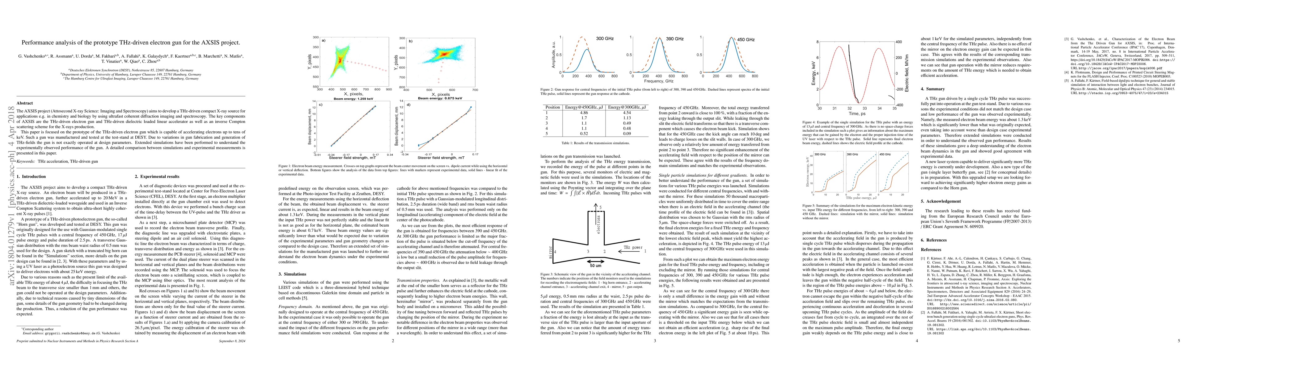 This paper analyzes the performance of a prototype THz-driven electron gun for the AXSIS project, focusing on its ability to accelerate electrons up to tens of keV. Experimental results and extended simulations are compared to understand deviations from design parameters.