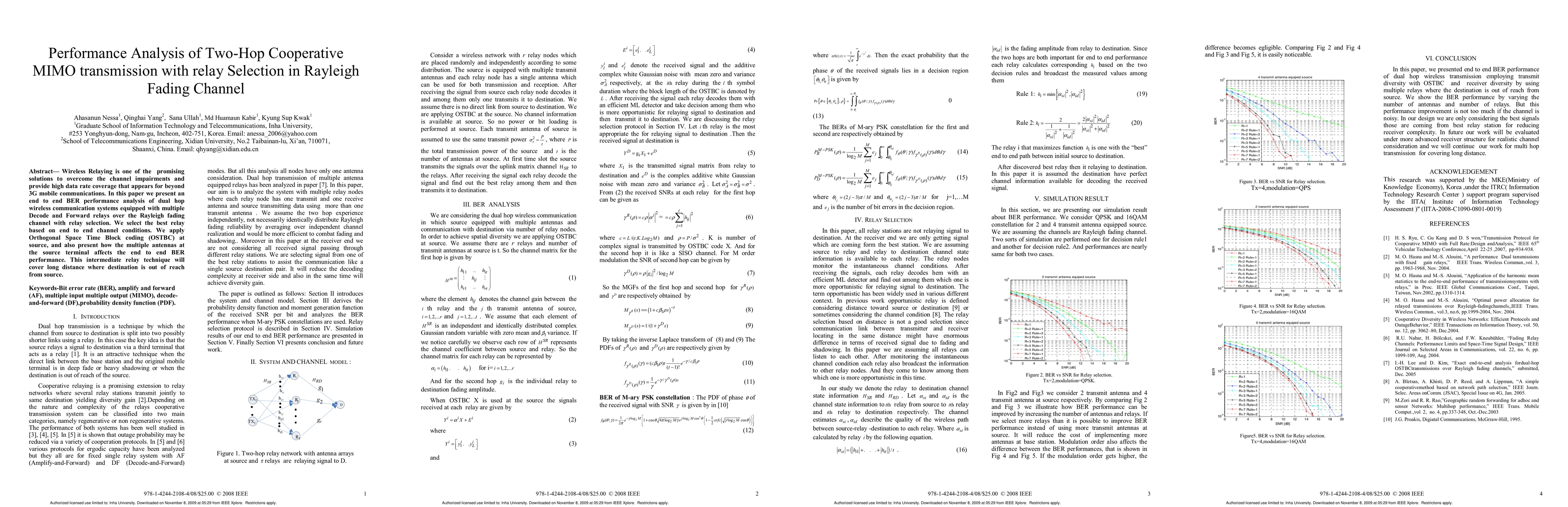 This paper analyzes the end-to-end bit error rate (BER) performance of dual-hop cooperative MIMO systems using multiple decode-and-forward relays over Rayleigh fading channels. The best relay is chosen based on end-to-end channel conditions, and orthogonal space-time block coding (OSTBC) is applied at the source to enhance performance.