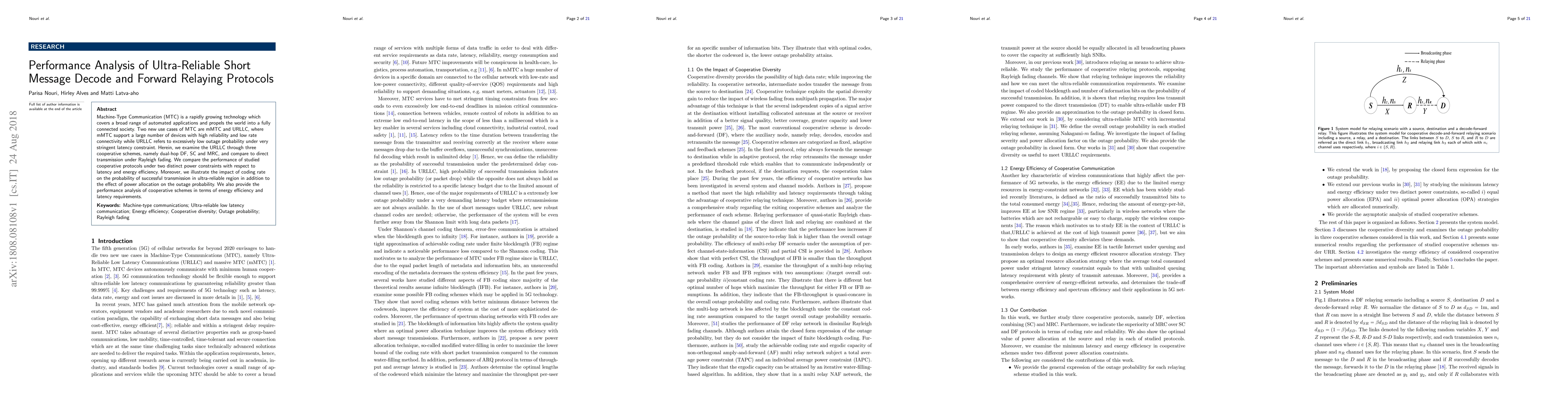 This paper analyzes the performance of ultra-reliable short message decode and forward relaying protocols under machine-type communication, focusing on ultra-reliable low latency communication (URLLC). It compares dual-hop decode and forward, selection combining, and maximal ratio combining cooperative schemes against direct transmission, evaluating their latency, energy efficiency, and impact of coding rate and power allocation on successful transmission.