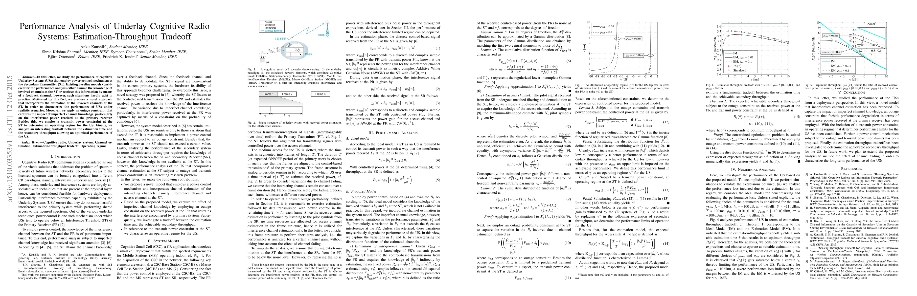 This paper proposes a novel approach for analyzing cognitive Underlay Systems (USs) that incorporates channel estimation at the Secondary Transmitter (ST) to reflect practical scenarios. It examines the tradeoff between estimation time and secondary throughput under an outage constraint and transmit power limit, aiming to optimize US performance.