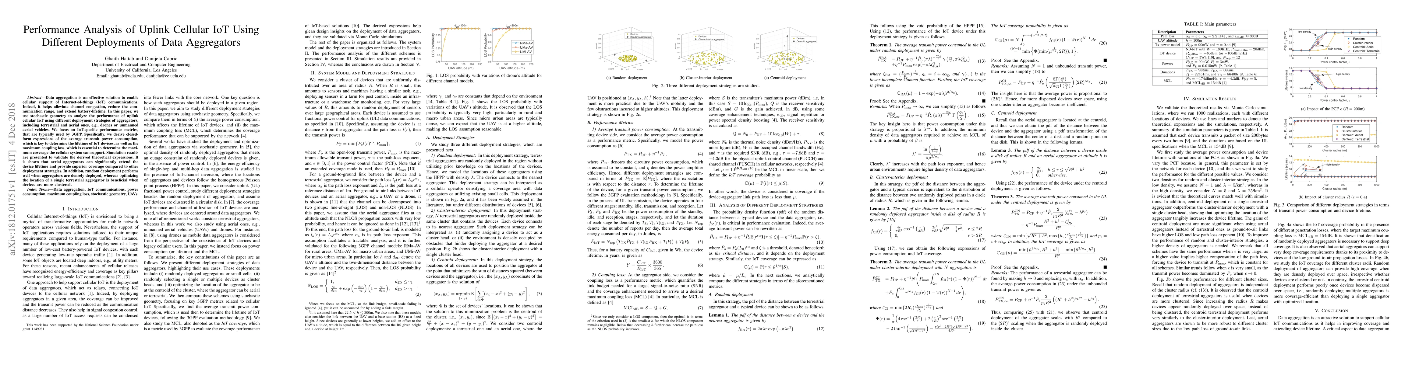 A study analyzed the performance of uplink cellular IoT using different data aggregator deployments, finding that aerial aggregators extend device lifetime and provide superior coverage, with random deployment performing well when densely deployed.