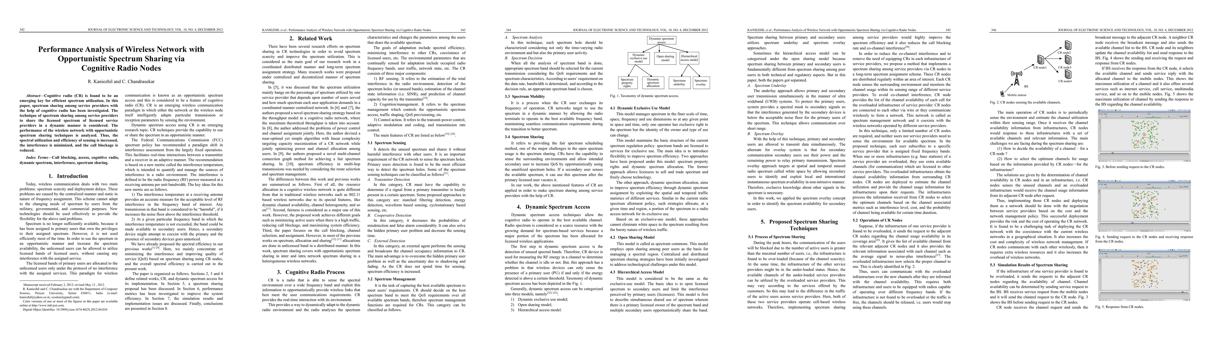 This paper investigates the performance of wireless networks using cognitive radio nodes for opportunistic spectrum sharing, enhancing spectral utilization and efficiency while minimizing interference and reducing call blockage.