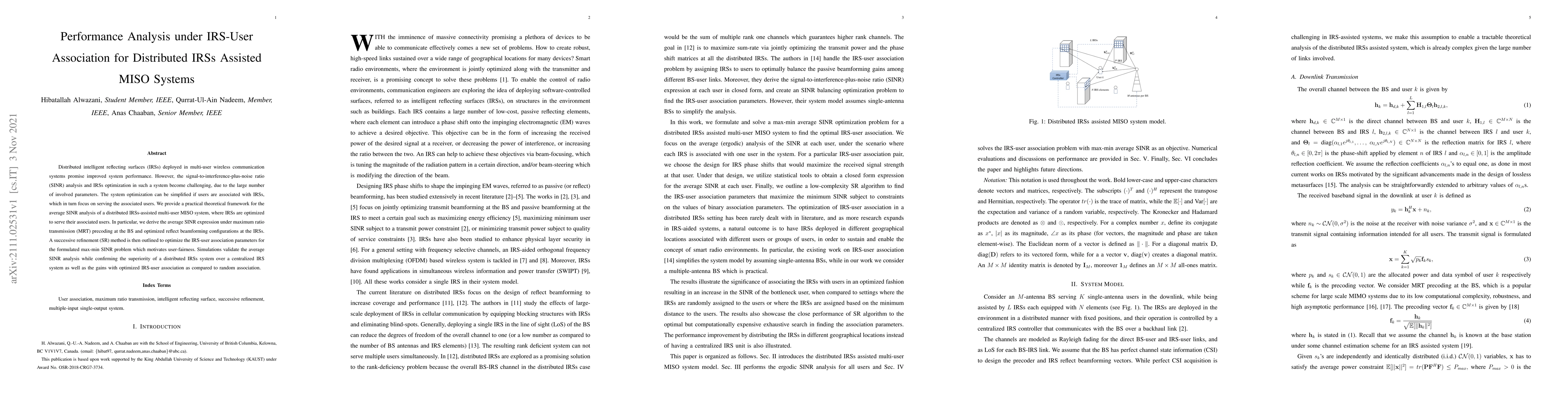 This paper proposes a theoretical framework for optimizing distributed IRSs in multi-user MISO systems, improving SINR analysis and user fairness through optimized IRS-user association.