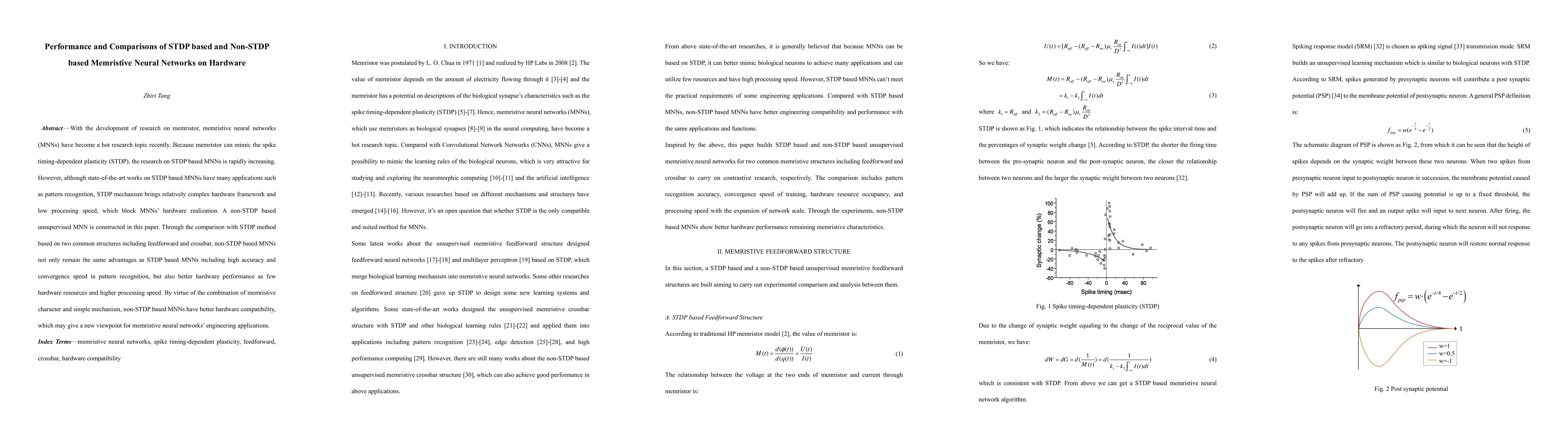This paper compares STDP-based and non-STDP-based memristive neural networks (MNNs) in hardware, finding that non-STDP MNNs maintain high accuracy and convergence speed but achieve better hardware performance with fewer resources and higher processing speed.