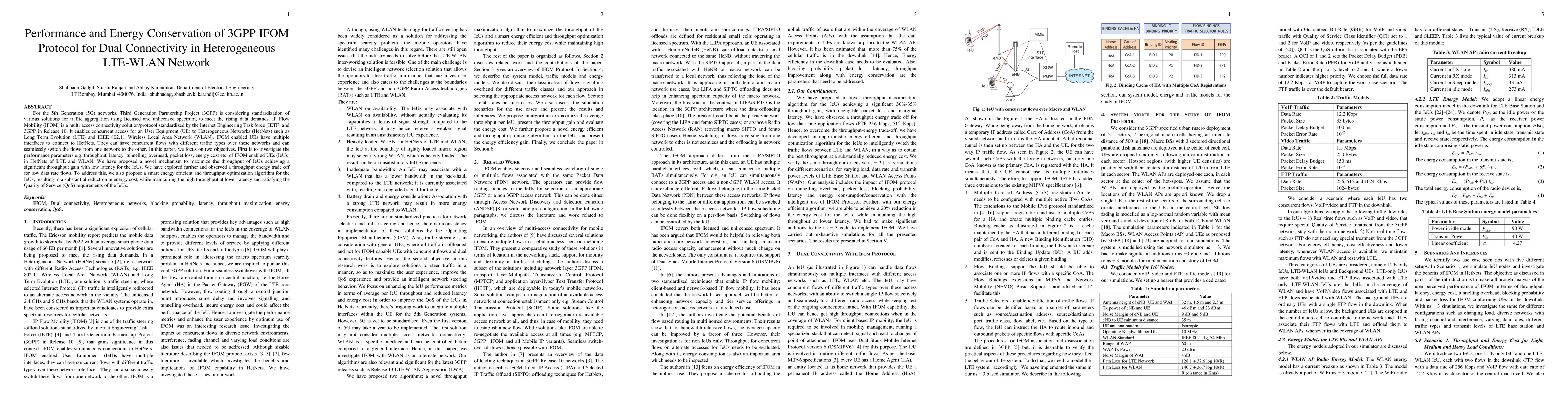 This paper investigates the performance of 3GPP IFOM protocol in heterogeneous LTE-WLAN networks, aiming to optimize throughput and energy conservation for user equipment devices.