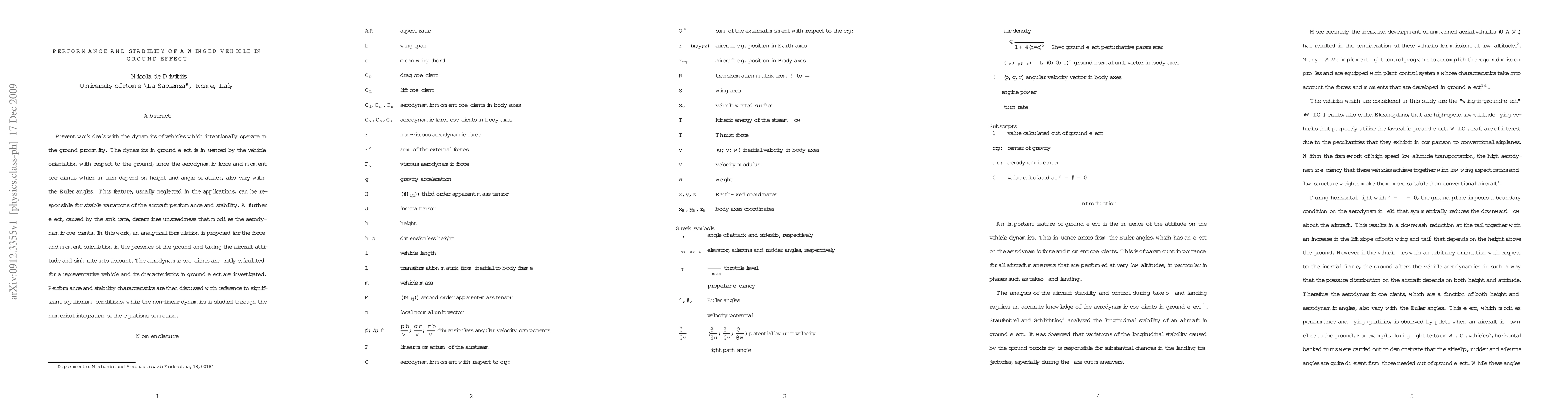 This paper investigates the dynamics of winged vehicles operating close to the ground, focusing on how vehicle orientation, height, and sink rate affect aerodynamic forces and moments. An analytical model is developed to calculate these forces and moments, considering aircraft attitude and sink rate, and the results are used to analyze performance and stability under various equilibrium conditions.