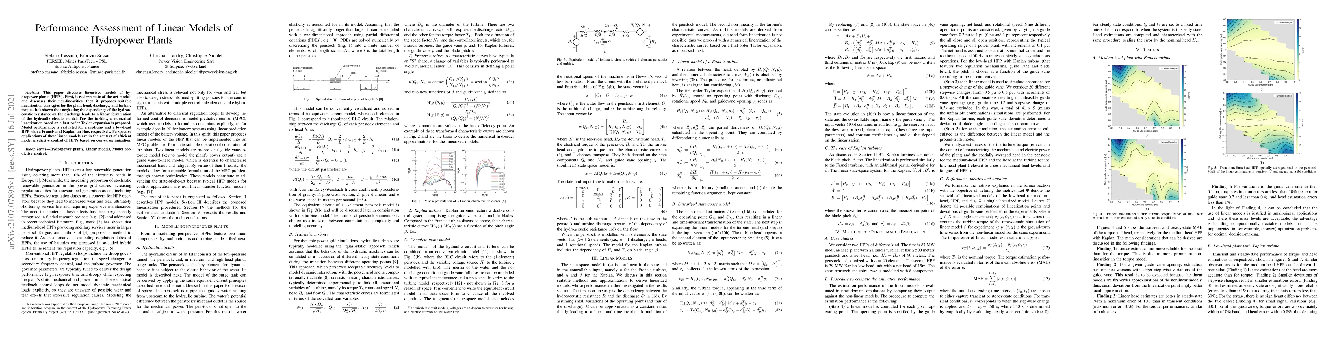 This paper develops linear models for hydropower plants to facilitate efficient model predictive control through convex optimization. It proposes suitable linearization strategies for key plant components, including turbine torque and hydraulic circuits.