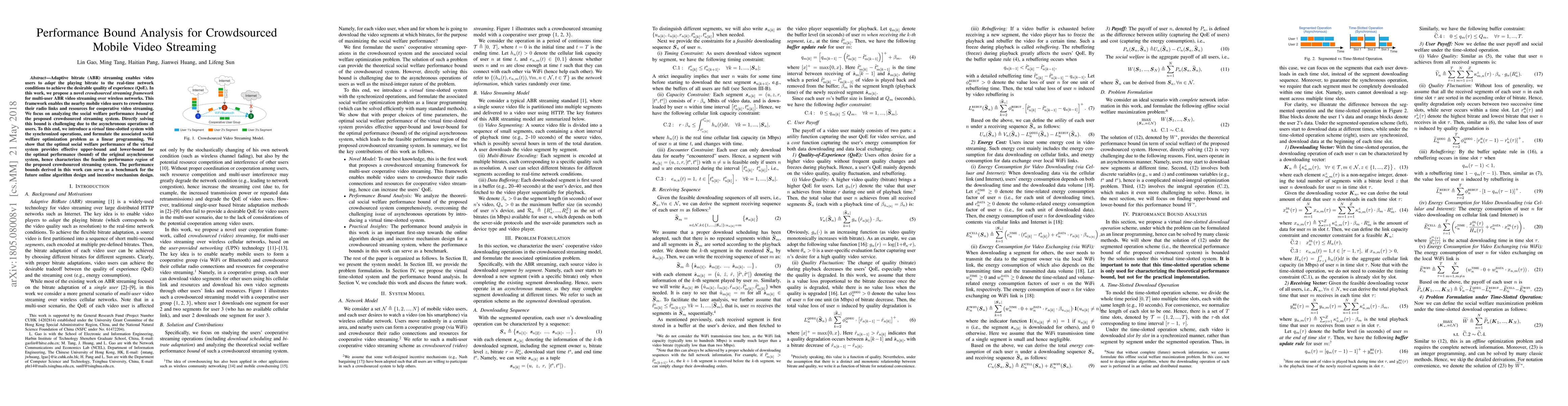 This paper proposes a novel crowdsourced streaming framework for adaptive bitrate video streaming over wireless networks, enabling mobile users to share their resources. It analyzes the social welfare performance bound using a virtual time-slotted system, providing upper and lower bounds for the asynchronous system and establishing a benchmark for future algorithm and incentive mechanism designs.