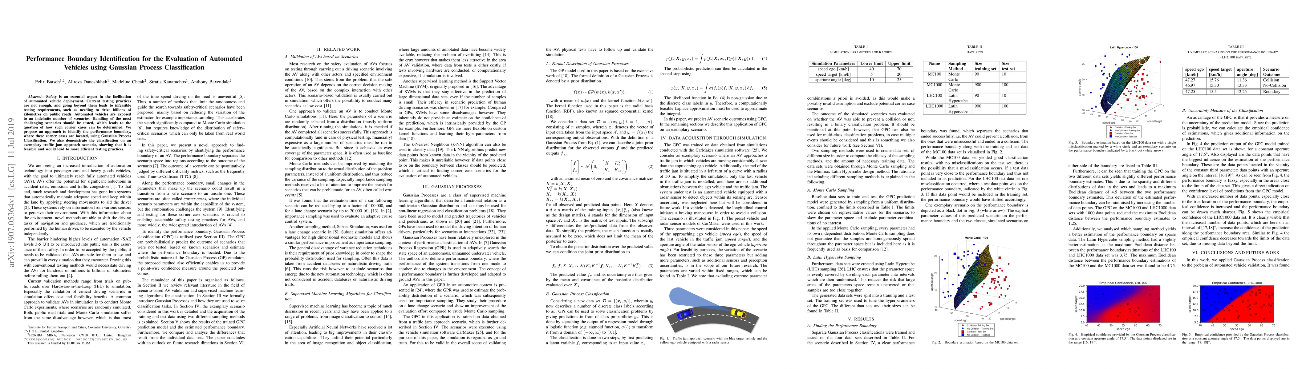 Safety is an essential aspect in the facilitation of automated vehicle deployment. Current testing practices are not enough, and going beyond them leads to infeasible testing requirements, such as needing to drive billions of kilometres on public roads. Automated vehicles are exposed to an indefinite number of scenarios. Handling of the most challenging scenarios should be tested, which leads to the question of how such corner cases can be determined. We propose an approach to identify the performance boundary, where these corner cases are located, using Gaussian Process Classification. We also demonstrate the classification on an exemplary traffic jam approach scenario, showing that it is feasible and would lead to more efficient testing practices.