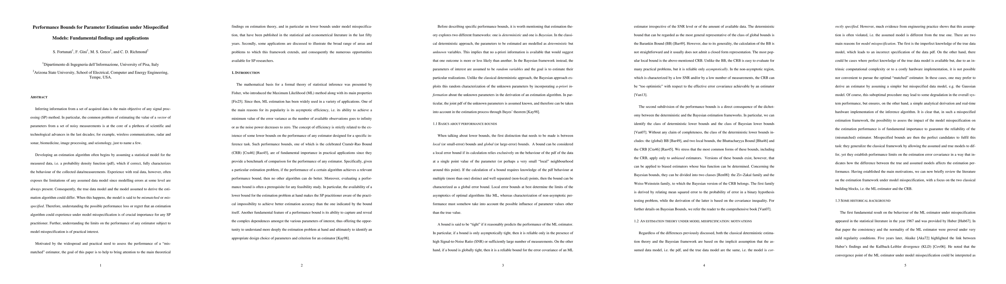 Inferring information from a set of acquired data is the main objective of any signal processing (SP) method. In particular, the common problem of estimating the value of a vector of parameters from a set of noisy measurements is at the core of a plethora of scientific and technological advances in the last decades; for example, wireless communications, radar and sonar, biomedicine, image processing, and seismology, just to name a few. Developing an estimation algorithm often begins by assuming a statistical model for the measured data, i.e. a probability density function (pdf) which if correct, fully characterizes the behaviour of the collected data/measurements. Experience with real data, however, often exposes the limitations of any assumed data model since modelling errors at some level are always present. Consequently, the true data model and the model assumed to derive the estimation algorithm could differ. When this happens, the model is said to be mismatched or misspecified. Therefore, understanding the possible performance loss or regret that an estimation algorithm could experience under model misspecification is of crucial importance for any SP practitioner. Further, understanding the limits on the performance of any estimator subject to model misspecification is of practical interest. Motivated by the widespread and practical need to assess the performance of a mismatched estimator, the goal of this paper is to help to bring attention to the main theoretical findings on estimation theory, and in particular on lower bounds under model misspecification, that have been published in the statistical and econometrical literature in the last fifty years. Secondly, some applications are discussed to illustrate the broad range of areas and problems to which this framework extends, and consequently the numerous opportunities available for SP researchers.