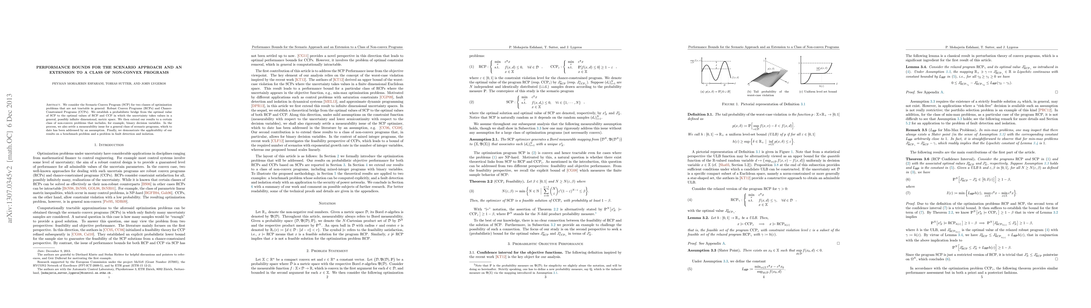 This paper establishes performance bounds for the Scenario Convex Program (SCP) applied to Robust Convex Programs (RCPs) and Chance-Constrained Programs (CCPs), extending the results to a class of non-convex programs. It also resolves a measurability issue for a general class of scenario programs and applies the findings to benchmark and fault detection problems.