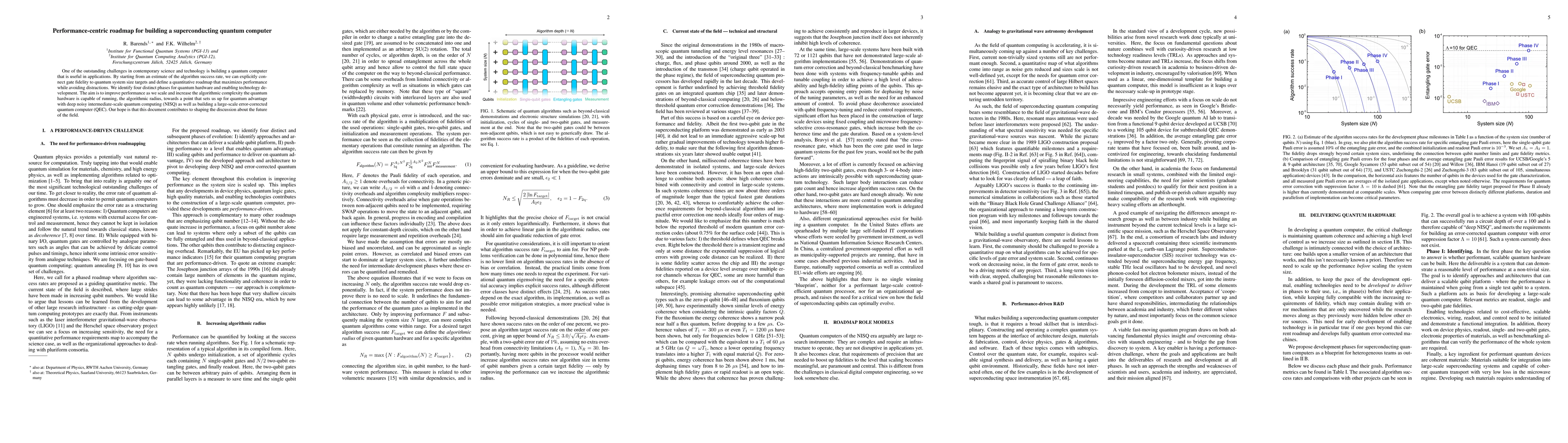 One of the outstanding challenges in contemporary science and technology is building a quantum computer that is useful in applications. By starting from an estimate of the algorithm success rate, we can explicitly connect gate fidelity to quantum system size targets and define a quantitative roadmap that maximizes performance while avoiding distractions. We identify four distinct phases for quantum hardware and enabling technology development. The aim is to improve performance as we scale and increase the algorithmic complexity the quantum hardware is capable of running, the algorithmic radius, towards a point that sets us up for quantum advantage with deep noisy intermediate-scale quantum computing (NISQ) as well as building a large-scale error-corrected quantum computer (QEC). Our hope is that this document contributes to shaping the discussion about the future of the field.