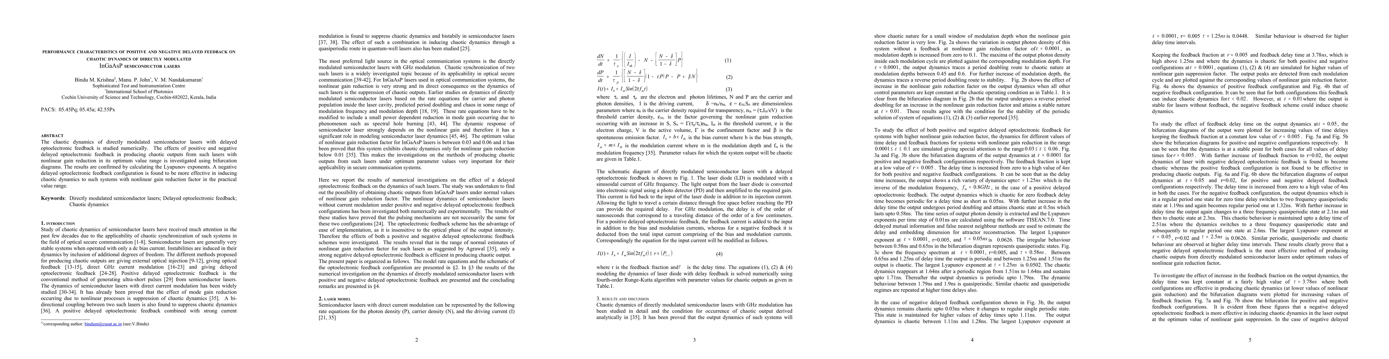 This study investigates the chaotic dynamics of directly modulated InGaAsP semiconductor lasers with delayed optoelectronic feedback, finding that negative feedback is more effective than positive feedback in inducing chaotic behavior, confirmed by bifurcation diagrams and Lyapunov exponents.