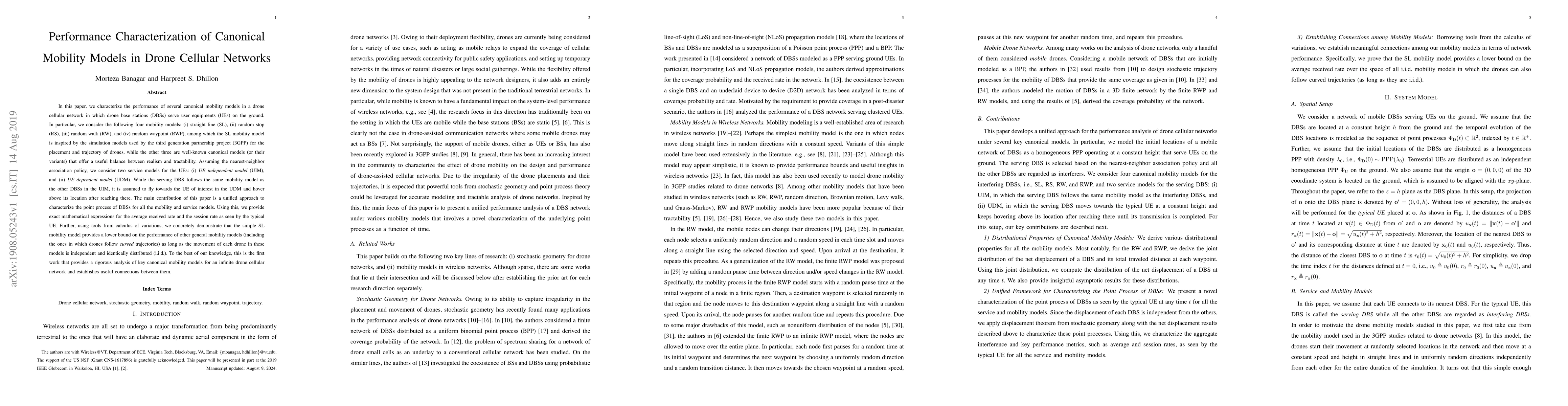 This paper characterizes the performance of four canonical mobility models in a drone cellular network, deriving exact mathematical expressions for average and session rates. It demonstrates that the straight line model provides a performance lower bound for all other models, establishing the first rigorous analysis of these models in such networks.