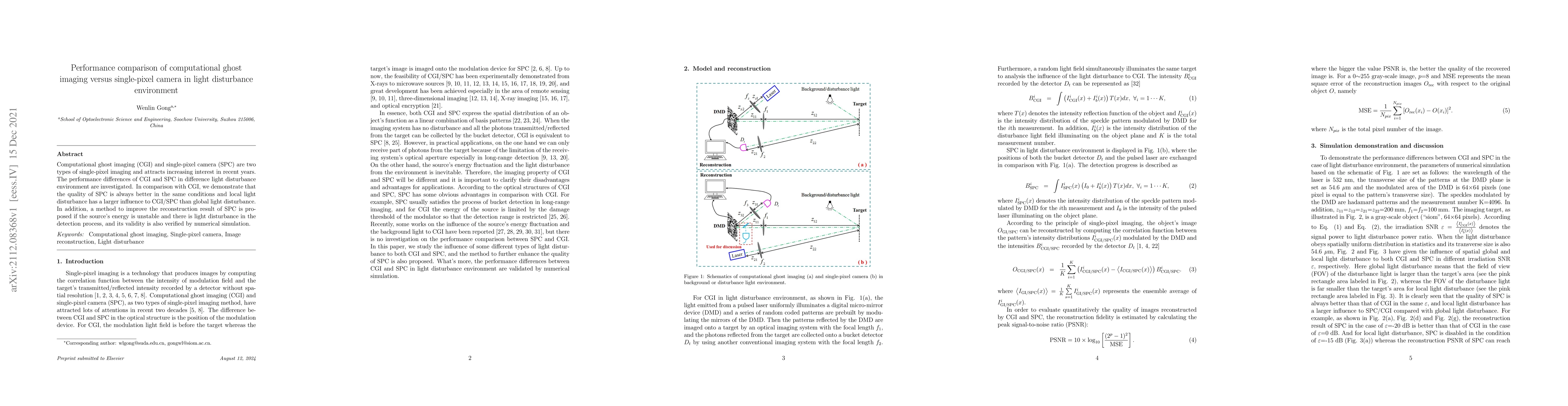 This paper compares the performance of computational ghost imaging (CGI) and single-pixel camera (SPC) under varying light disturbance conditions, showing that SPC consistently outperforms CGI. It also proposes a method to enhance SPC reconstruction in unstable light environments, validated by numerical simulation.