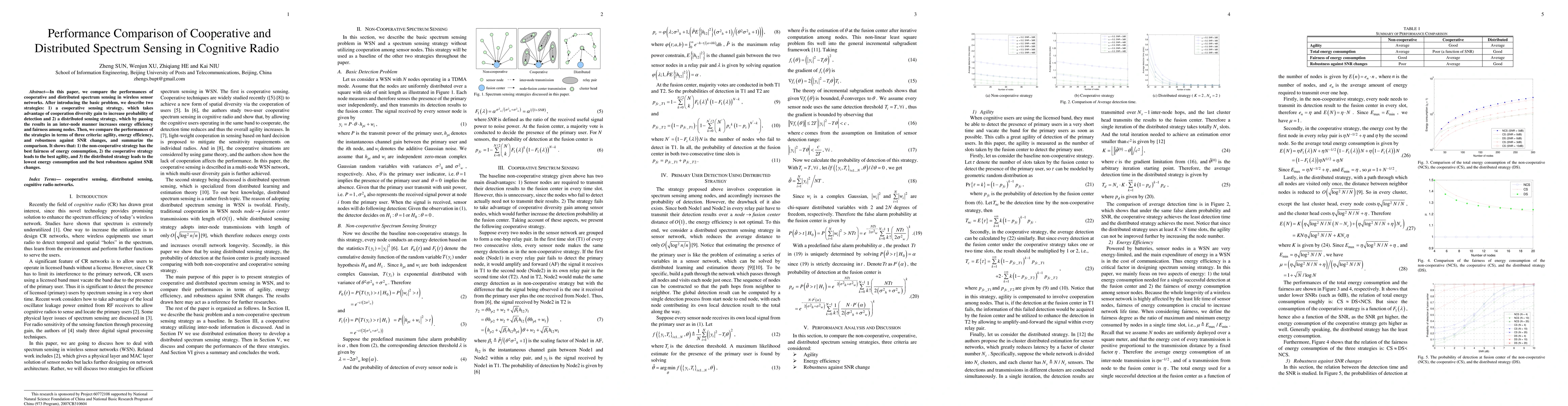 This paper compares cooperative and distributed spectrum sensing in cognitive radio, evaluating them based on agility, energy efficiency, and robustness. The cooperative strategy enhances detection probability, while the distributed strategy improves energy efficiency and fairness. The results indicate that distributed sensing offers the best energy efficiency and robustness, while cooperative sensing excels in agility.
