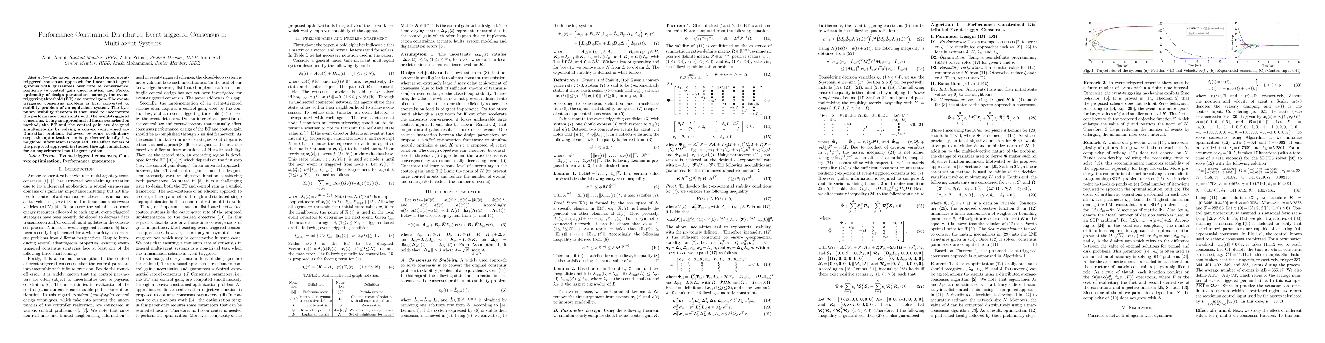 The paper proposes a distributed eventtriggered consensus approach for linear multi-agent systems with guarantees over rate of convergence, resilience to control gain uncertainties, and Pareto optimality of design parameters, namely, the event-triggering threshold (ET) and control gain. The event-triggered consensus problem is first converted to stability problem of an equivalent system. The Lyapunov stability theorem is then used to incorporate the performance constraints with the event-triggered consensus. Using an approximated linear scalarization method, the ET and the control gain are designed simultaneously by solving a convex constrained optimization problem. Followed by some preliminary steps, the optimization can be performed locally, i.e., no global information is required. The effectiveness of the proposed approach is studied through simulations for an experimental multi-agent system.