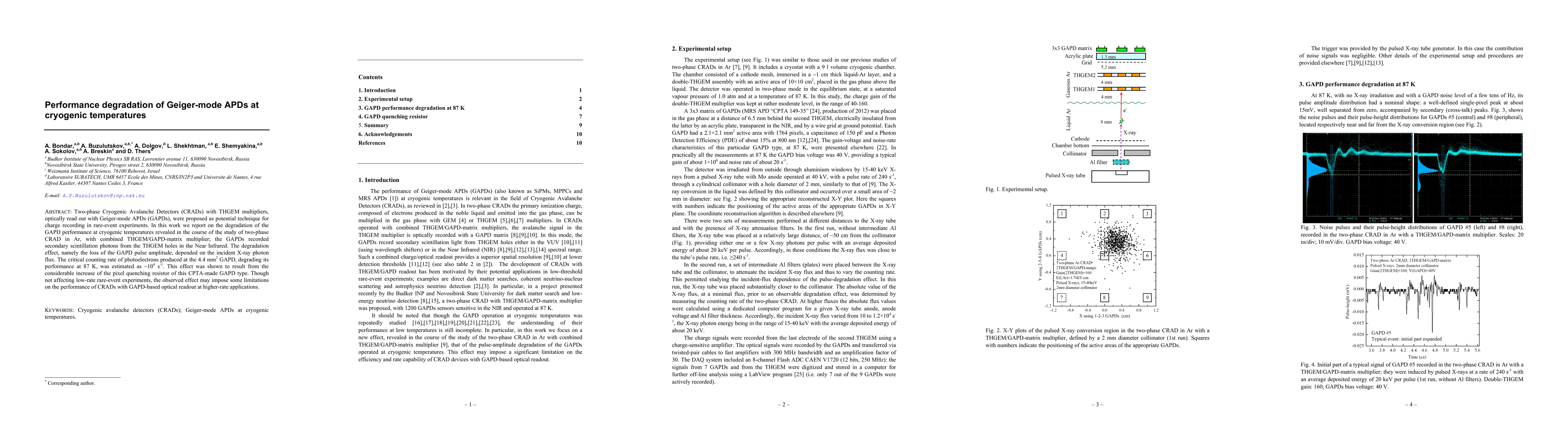 This paper investigates the performance degradation of Geiger-mode Avalanche Photodiodes (GAPDs) at cryogenic temperatures, finding that the GAPDs lose pulse amplitude due to increased pixel quenching resistors, particularly at high incident X-ray photon fluxes, which may limit their use in high-rate applications.