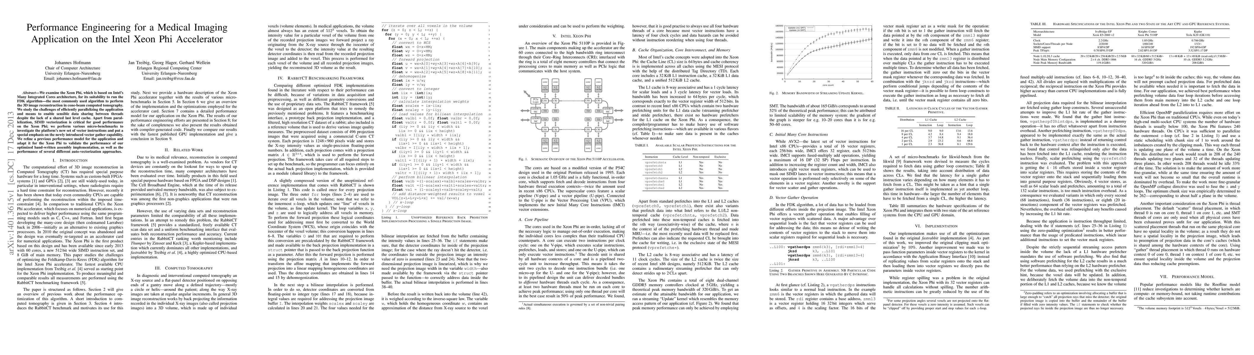 This paper investigates the performance of the FDK algorithm for 3D image reconstruction on Intel's Xeon Phi accelerator, focusing on efficient parallelization and SIMD vectorization. It explores challenges in parallelizing the application and evaluates various vectorization techniques, including a new vector gather capability, to optimize performance on the Xeon Phi.